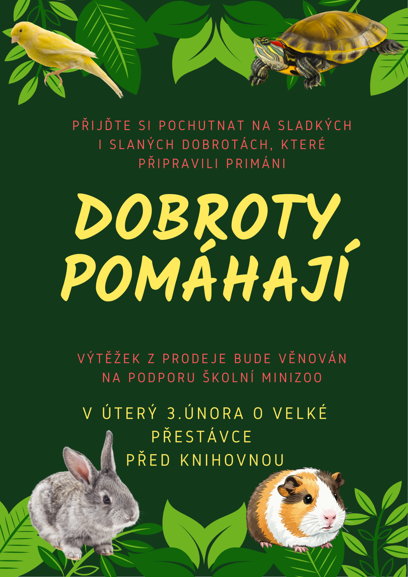 Akce se velmi vydařila a díky ochotě, nadšení a štědrosti se podařilo prodejem dobrot vybrat 9 421 Kč. Peníze budou využity na péči o školní zvířata.