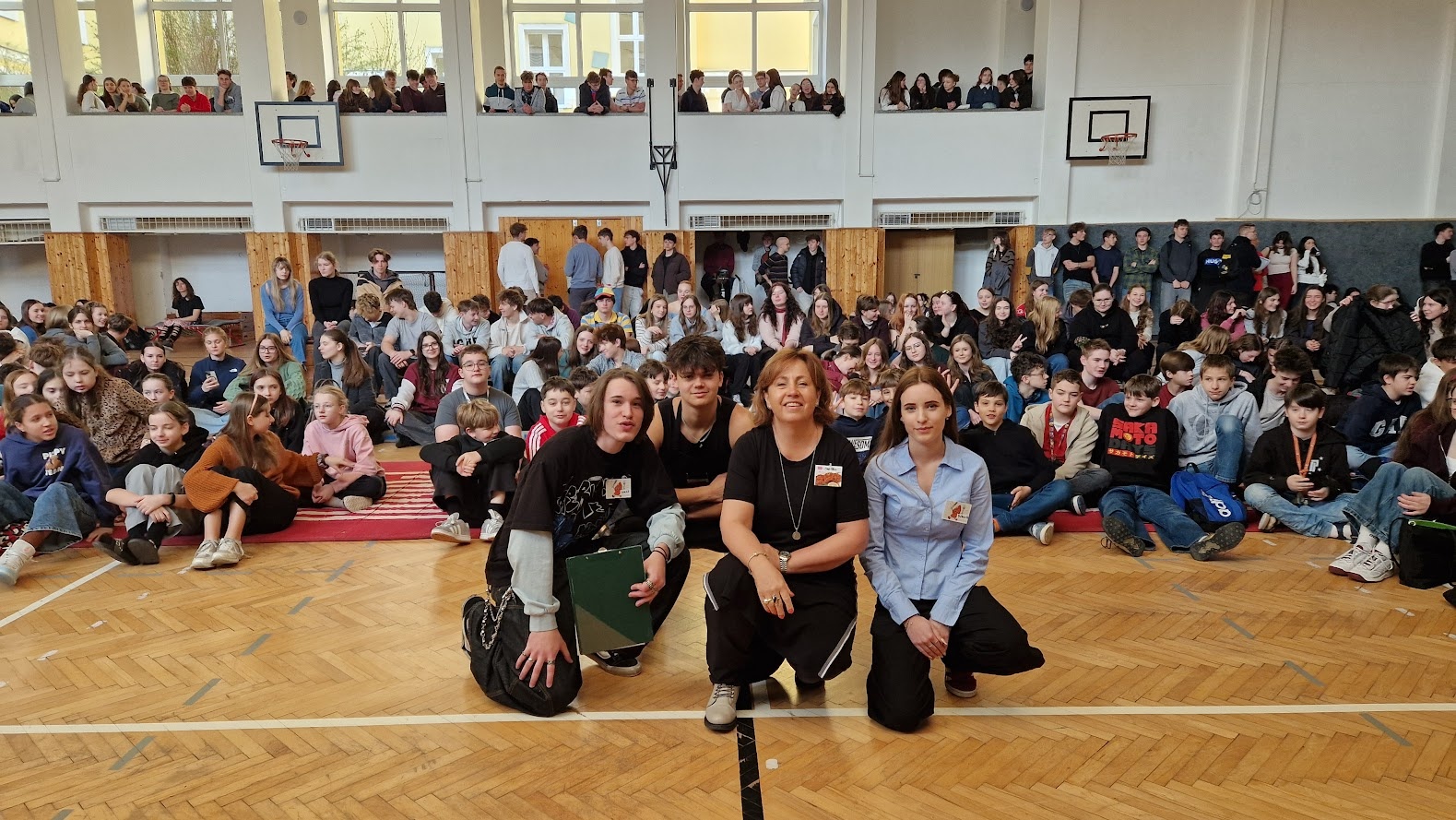 Pro nižší gympl jsme si nachystali přednášky my, studenti z 6.A. Všechny 4 třídy, od primy až po kvartu, se tak dozvěděly něco o tom, jak si takový správný řízek udělat a na co si při jeho přípravě dát pozor. Taky kde se tady řízek vůbec vzal, proč ho máme rádi a jak vypadá v různých částech světa. A aby toho nebylo málo, zjistili i něco o stolování na královském dvoře. Pro nějaké to zpestření prověřili následně své nově nabyté znalosti v připravených kvízech a aktivitách. A samozřejmě to, na co se všichni nejvíc těšili: každý si mohl v průběhu dne přijít pochutnat na skvělém řízku. A jelikož řízků není nikdy dost, i v jídelně všechny čekal na oběd řízek, tentokrát holandský.