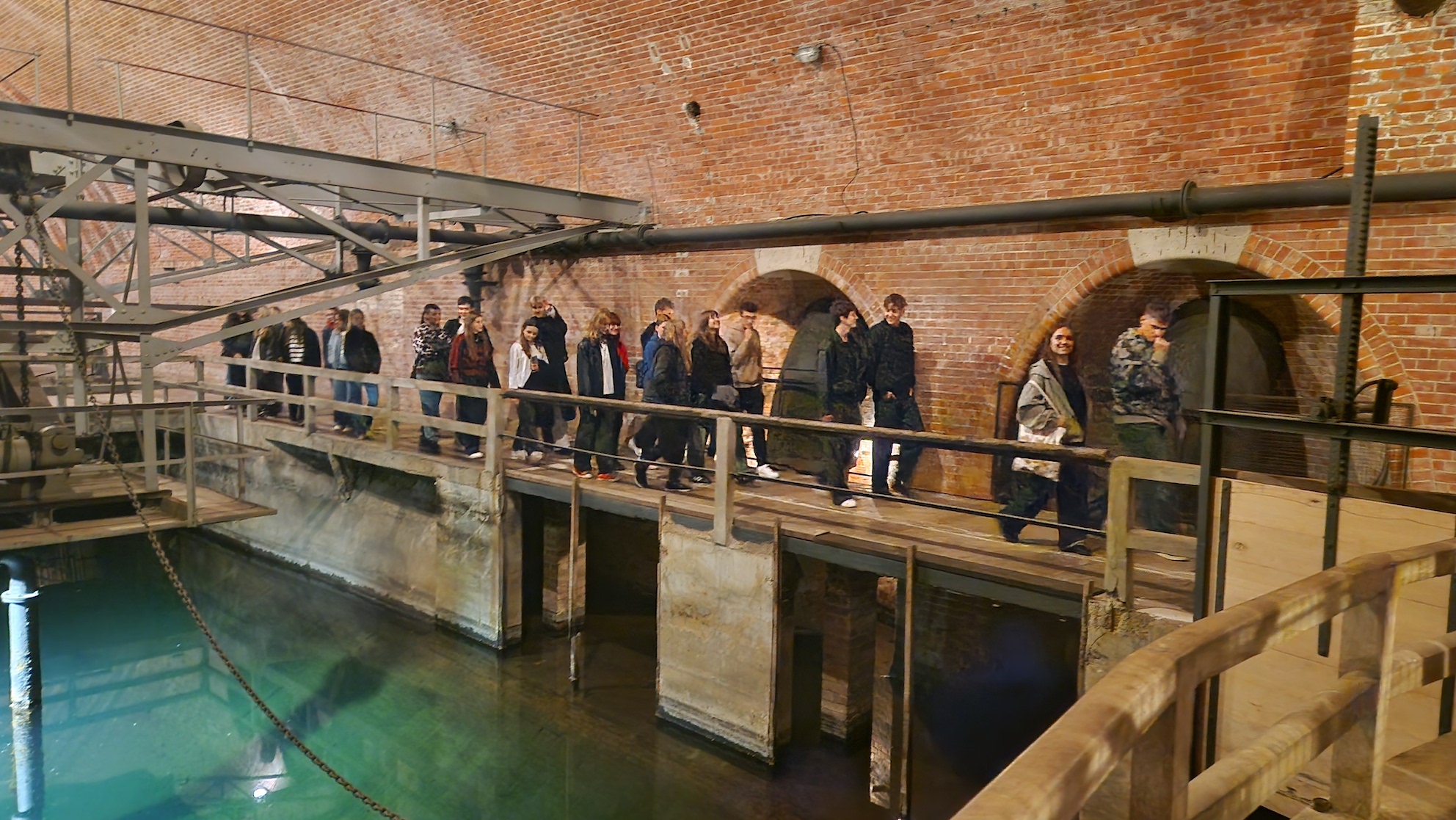 Po ubytování v Hostelu Homer jsme zamířili do Staré čistírny odpadních vod v Bubenči, unikátní památky z roku 1906. Prohlídka podzemních prostor a projížďka loďkou v temných chodbách nám připomněly, že i technika má své kouzlo. Někteří odvážlivci si dokonce vyzkoušeli slaňování z komína!