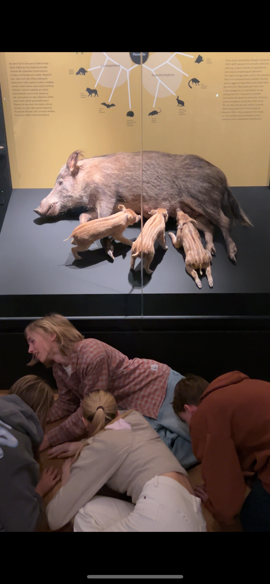 Ráno jsme se setkali na nádraží v Břeclavi, celí natěšení na tříhodinovou cestu Slovenskou strelou. Po příjezdu do Prahy jsme hned vyrazili směr muzeum. Tam jsme strávili skoro 4 hodiny procházením zajímavých expozic týkajících se jak přírody, tak i historie. Procházení muzea nám zpestřovaly úkoly na selfie s různými exponáty. Viděli jsme třeba kostru plejtváka, modely prehistorických lidí nebo obrovský meteorit.